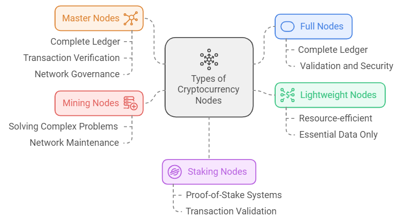 Master nodes are the overseers. They store the complete ledger, verify transactions, and help govern the network without adding new blocks.