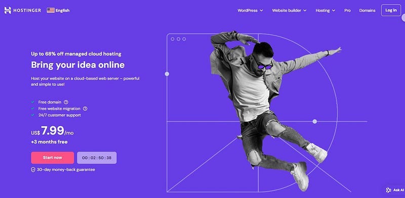 Their prices kick off at $2.99 a month, which feels like a steal given the quality. A standout feature of Hostinger is their 24/7 customer support — always there when you need them, in multiple languages, via live chat or email.